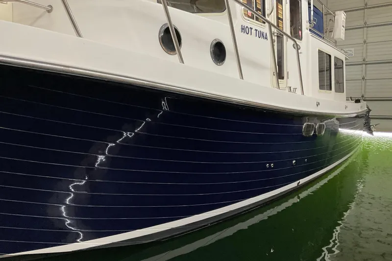"HOT TUNA" IS A BEAUTIFUL AMERICAN TUG, MOORED IN A BOATHOUSE IN FRESH WATER. THIS BOAT IS SET UP FOR LONG RANGE CRUISING FROM THE FACTORY IN LA CONNER, WA WITH A LARGE SEA FREEZE ROTOMOLDED 12V FREEZER AND YETI TUNDRA 160 COOLER ON THE UPPER DECK. EXTENDED 200 GALLON WATER TANK, TROLLING VALVE, ROCKET LAUNCHERS, TOMCO DOWNRIGGER PADS AND MARINCO POWER SUPPLIES, ICE MAKER, TRASH COMPACTOR. AB 10VS DINGHY WITH 25HP YAMAHA ENGINE AND SUNBRELLA CHAPS.