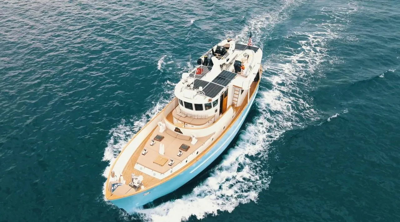 MY/Hunter / Ex Sarah Jane 2 designed by the Feadship design team of De Vries Lentsch and built as Traditonal steel construction at Cammenga yard in Holland. Purchased by her last owner in 2021. Rebuild from the metal up in 2002 following of a total refit completed between 2021-2023 at shipyard, she is now lying in Southern Turkish Riviera in Bodrum as complety ready for any kind of seas. She is an outstanding classic and superb Baby Blue hull paint new look for those looking for a Fancy-Classic. Upgraded very up-to date. A typical North Sea Class Trawler stands for seaworthiness and comfort.