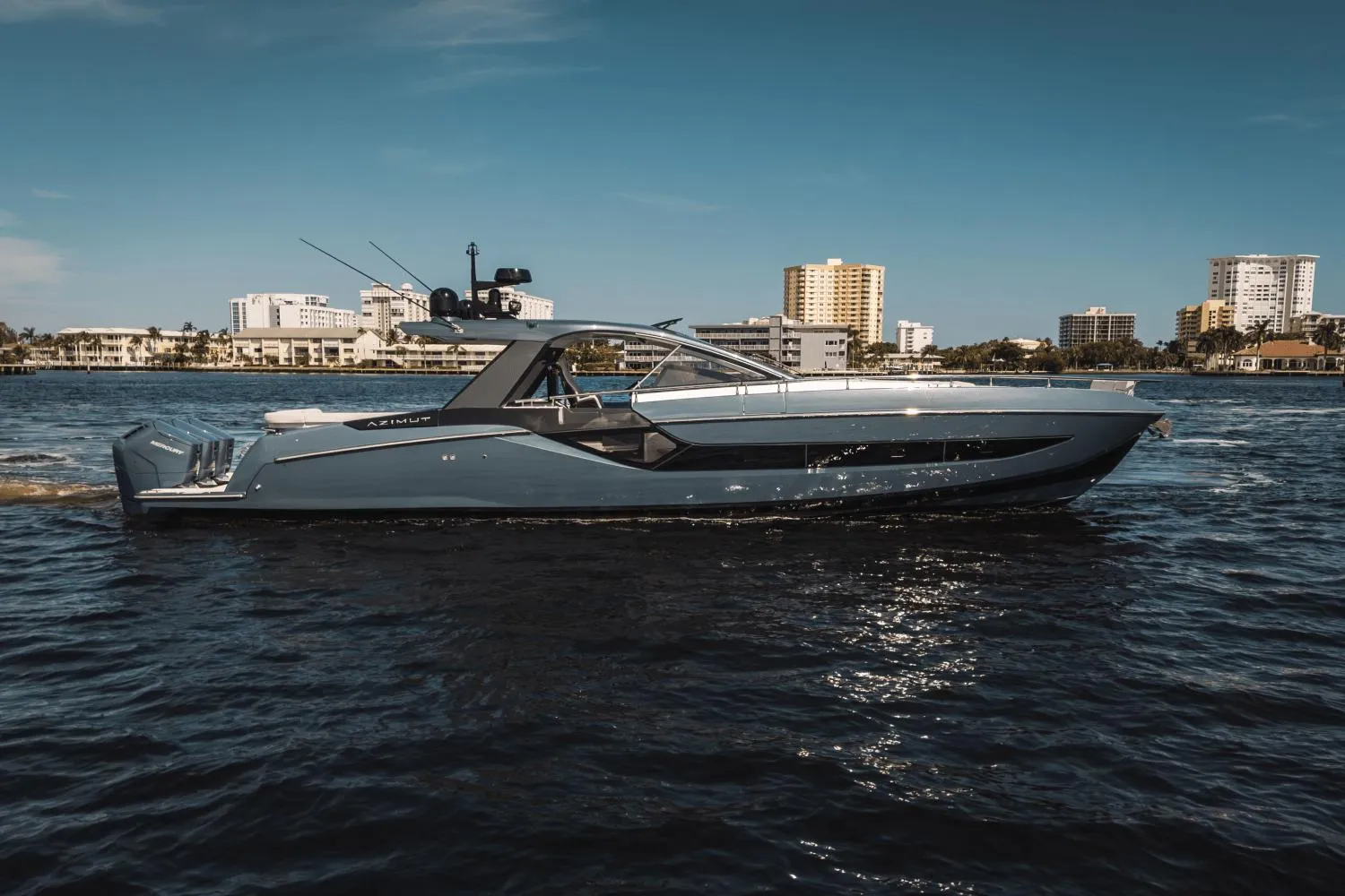 Azimut has masterfully combined the best elements of a cruiser and a day boat in this innovative design. Offering a multitude of seating areas both indoors and outdoors, as well as a retractable platform near the waterline, this vessel ensures a versatile and enjoyable experience on the water. The cabin features two distinct sleeping quarters, ideal for a small family to comfortably overnight. A powerful generator runs all onboard accessories, providing an unparalleled level of comfort for all occupants. To enhance stability at rest, a Seakeeper system is installed, while Humphrees interceptors maintain optimal balance while cruising. Navigational needs are met by three 16” MFD screens displaying FLIR, RADAR, SONAR, and GPS, alongside convenient touchscreen control of lighting and pumps.