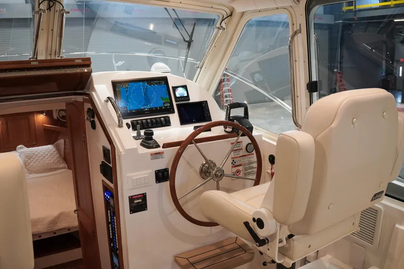 Family and friends will appreciate her three unique social spaces, including the enclosed pilothouse with HVAC control, perfect for enjoying 360-degree views while staying protected from unexpected bad weather. This feature allows you to hit the water earlier in the season and extend your outings later into the year. Experience the intimate connection to the water that the MJM 35 offers. Please note that pricing might not cover freight, commissioning, and some options. Stock photos are used, with more images coming soon.