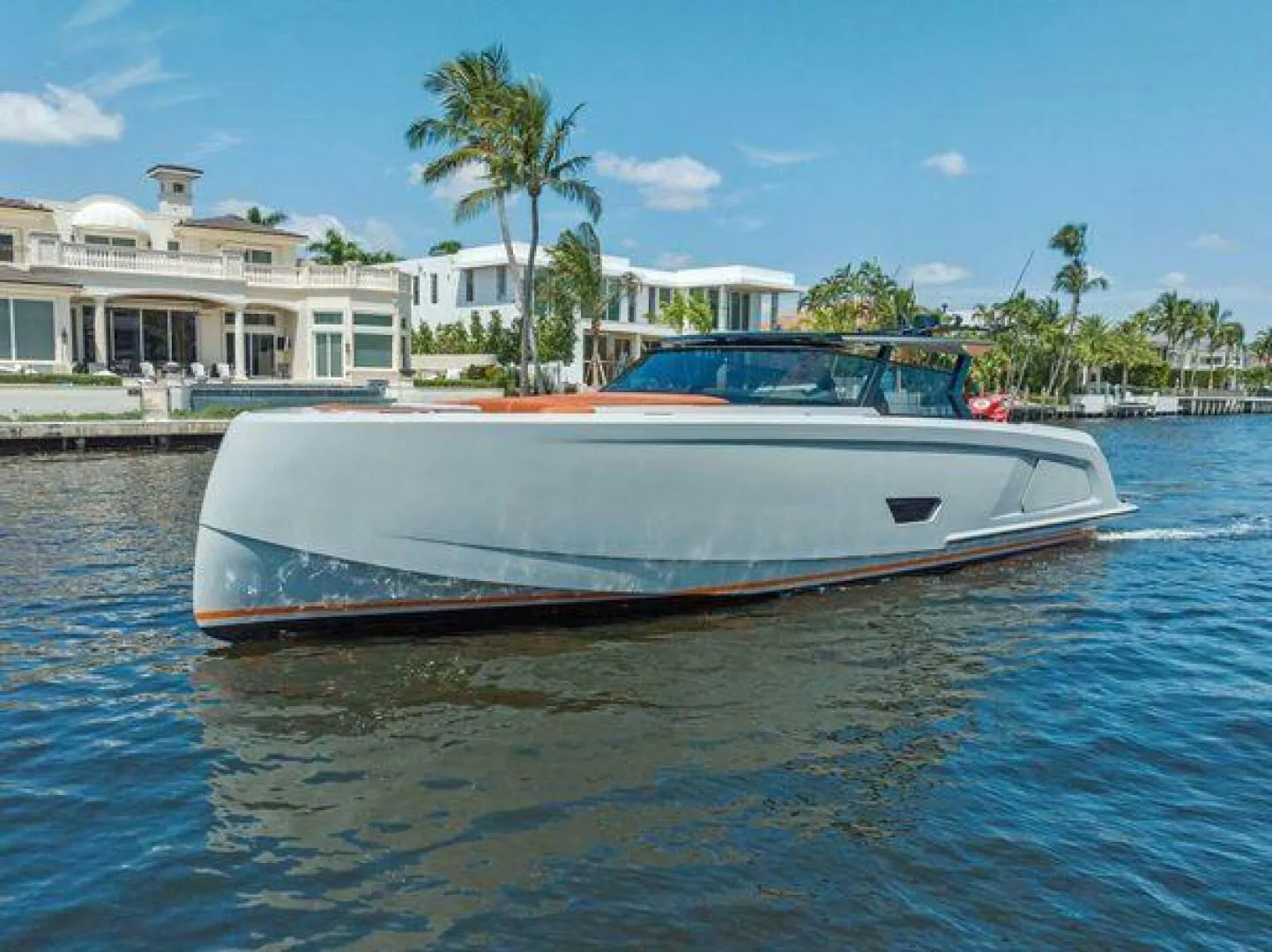 This Vanquish motor yacht features two guest cabins, including a convertible sofa in the main cabin and a spacious master stateroom, offering refined comfort for your cruising pleasure. Powered by twin Volvo IPS 950 engines, she effortlessly reaches a cruising speed of 28-31 knots. Equipped with top-notch amenities and meticulously designed interiors, This vessel promises an unbeatable yachting experience.