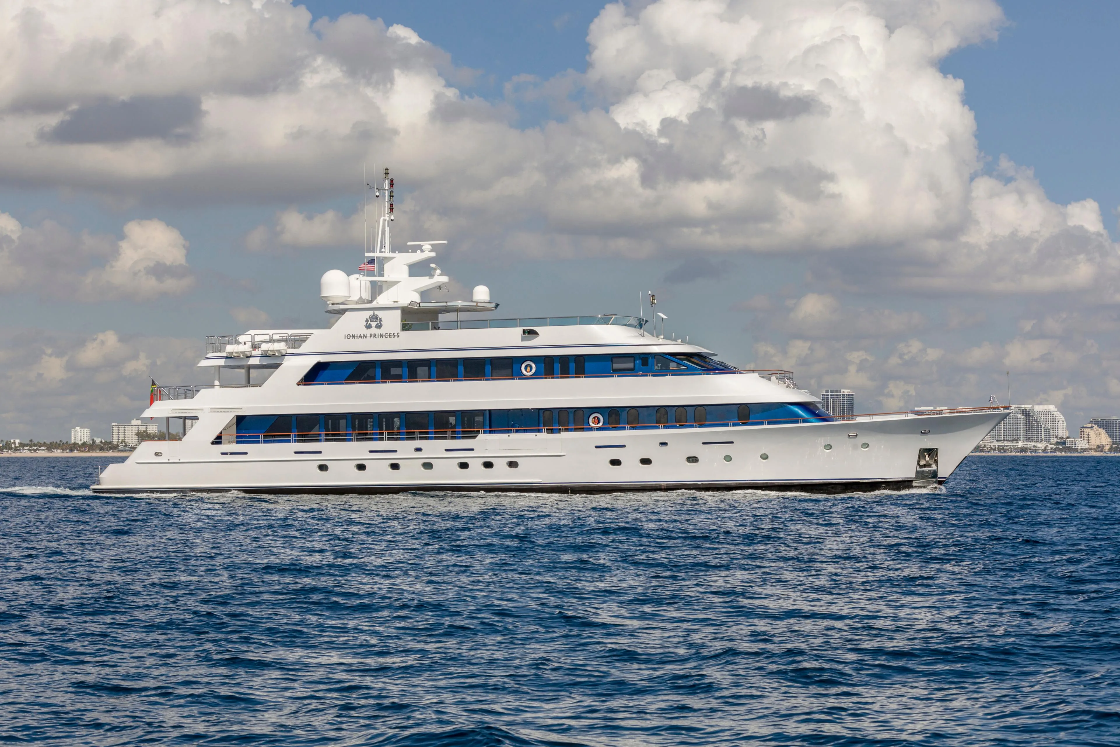 IONIAN PRINCESS is a distinguished 150’ (45.73m) motor yacht, crafted by two renowned American shipyards: Christensen Yachts and Palmer Johnson. Originally built in 2005, IONIAN PRINCESS is a tri-deck yacht with six staterooms featuring a versatile layout, expansive interior spaces, and ample exterior deck areas ideal for entertaining.