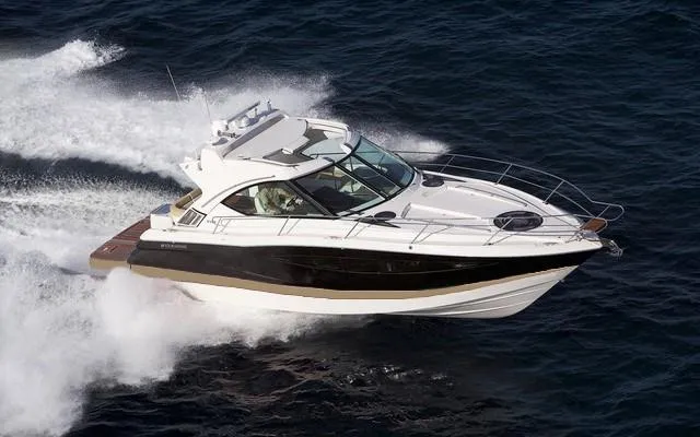 Well appointed cabin cruiser with two heads and room to sleep six, voluminous cockpit with large sliding hard-top, wide side decks and large easy cockpit access forward. Cockpit designated air condition unit for your comfort. Luxurious teak cockpit table and teak flooring, tables and hydraulic teak platform for your tender. Transom Electric BBQ grill with electric sliding transom sunbed backrest and a large platform gives you more areas to entertain.
