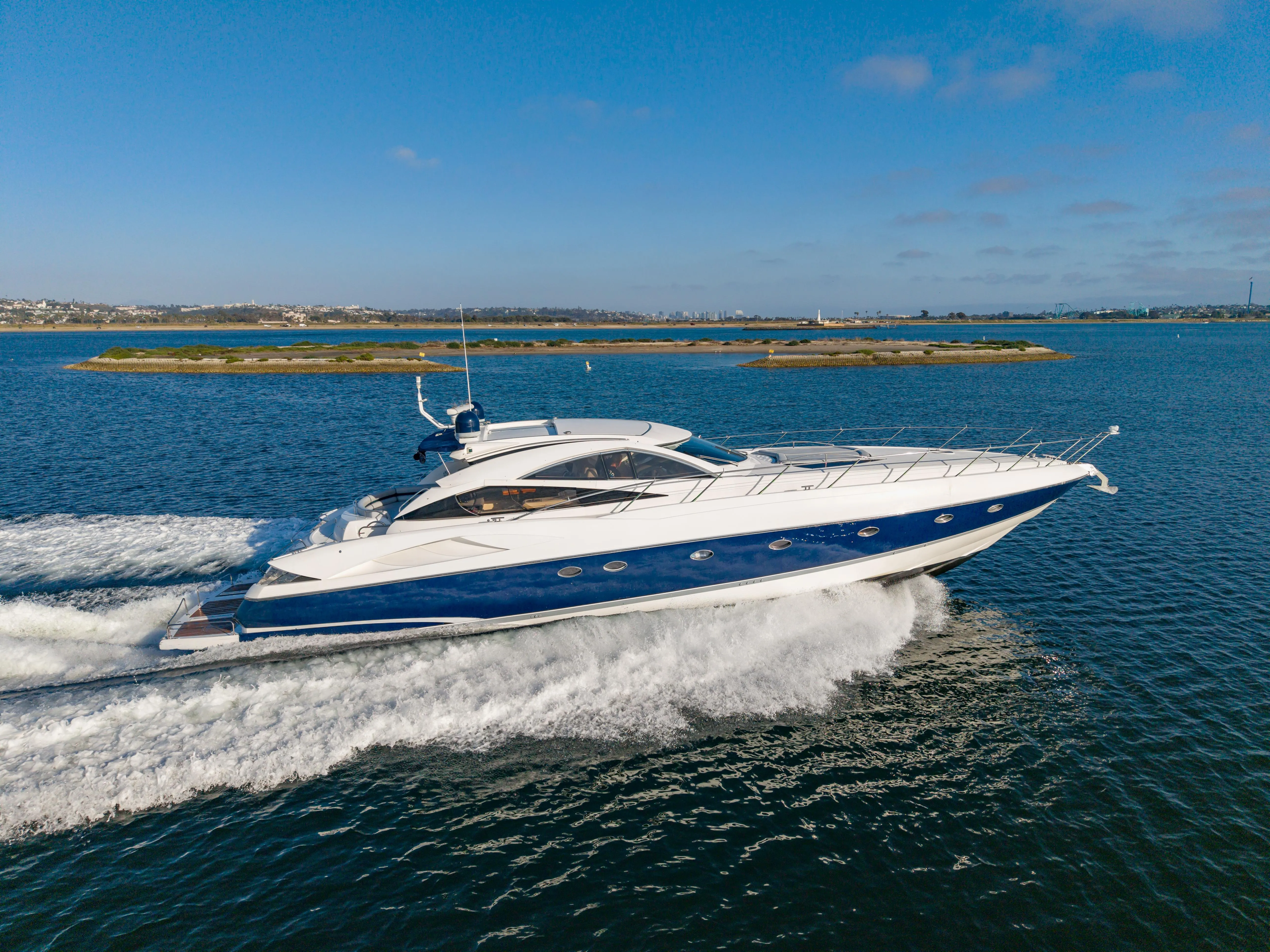 Introducing ISLAND GIRL, a Sunseeker Predator 68',  a luxury express cruiser renowned for its sleek design, powerful engines and opulent interior. Designed for exhilarating performance, her planing hull ensures a smooth ride, even in challenging sea conditions. The three stateroom, two head layout features an enormous full-beam master and huge salon with seating for eight. The interior is completely finished in high gloss cherry cabinetry and trim.