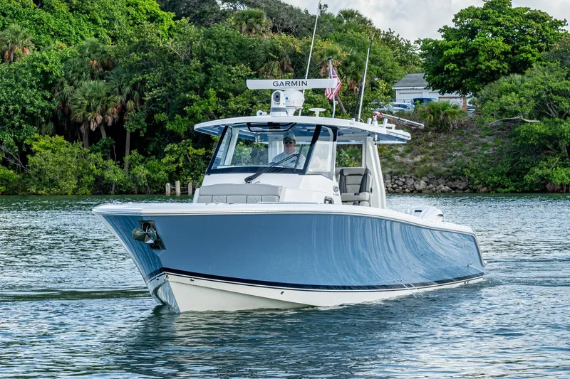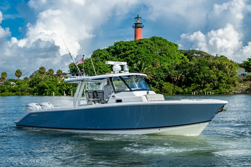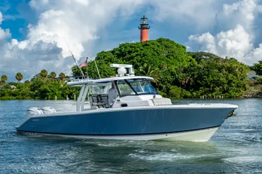 Designed to catch your eye and make it easy to haul in the perfect catch, the S 358 is Pursuit's first 35' class center console that brings luxury comfort features with fishability for those weekend adventure. Three-wide, ergonomically designed helm seating and dash for the ultimate in comfort and control for those long runs or just cruising close to home. What sets Pursuit center consoles apart from the competition is the aft entry, climate controlled cabin with an enclosed head for privacy and comfort.