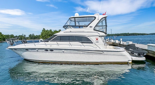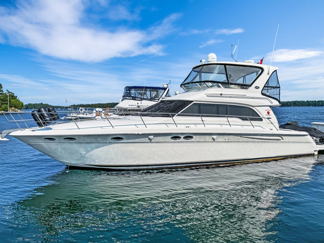 The stunning 2003 Sea Ray 480 Sedan Bridge, a remarkable flybridge yacht, embodies luxury and performance. With an overall length of 48 feet, this vessel is designed for both comfort and adventure on the water. The sleek fiberglass hull ensures durability and stability, making it an ideal choice for cruising enthusiasts. Powered by twin Cummins QSM-11 diesel engines, each delivering an impressive 616 horsepower, the Island Seeker boasts a cruising speed of 28 knots and a maximum hull speed of 34 knots, promising exhilarating journeys. Accommodations include three well-appointed cabins and two heads, providing ample space for relaxation and privacy. The yacht is equipped with essential features for a seamless experience on the water. Whether you're entertaining guests or enjoying a peaceful getaway, the Sea Ray 480 Sedan Bridge is a perfect blend of elegance and performance, ready to create unforgettable memories.