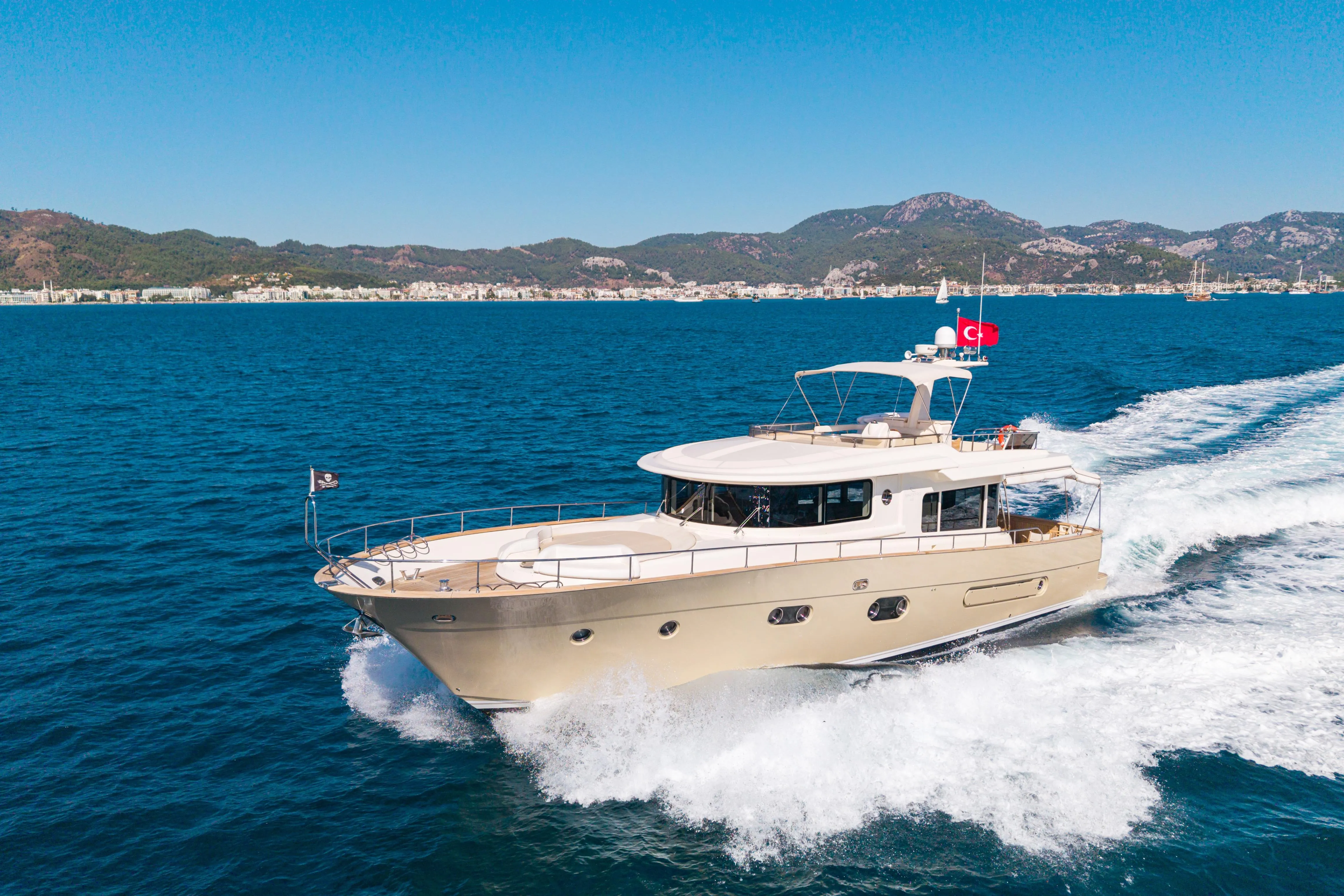Desirable galley down layout, offering an amazing open main deck space with nearly 360° vision.