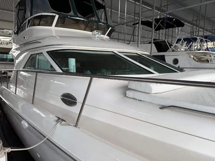 Introducing the stunning 1999 Sea Ray 400 Sedan Bridge, a remarkable motor yacht that effortlessly combines elegance and performance. With an overall length of 44 feet, this vessel boasts a modified Vee hull crafted from durable fiberglass, ensuring stability and smooth navigation on the water. Powered by twin T-454 MPI Horizon MerCruiser engines, each delivering an impressive 380 horsepower, this yacht offers a cruising speed of 22 mph and a maximum hull speed of 28 mph, making it perfect for exhilarating outings. The electric windlass enhances convenience, allowing for easy anchoring. Inside, the yacht features two well-appointed cabins and two heads, providing ample space for relaxation and comfort. The thoughtful design and quality craftsmanship make the Sea Ray 400 Sedan Bridge an exceptional choice for those seeking adventure on the water. Experience luxury and performance with the Jet Lag, your gateway to unforgettable memories.