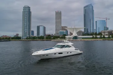 “Jones’N” is a spectacular Freshwater example of the popular SeaRay 43/470 Sundancer. She is located on Lake Michigan in Milwaukee, WI, and the definition of Turn Key! Pride in Ownership is evident from the moment you step aboard with many notable features and upgrades and make her stand out amongst the rest! She is loaded and equipped with notable feature like her full Raymarine electronics suite – Dual 12” hynrid touchscreen displays, Super HD Magnum Open array radar, Back up camera, Flir Camera, Cockpit Air, Teak, Hydraulic SwimPlatform, Custom JL Audio Stereo system, cockpit Misters, any much more! She is fully Ceramic Coated and has always been stored indoors in heated storage. She Receives Full annual maintenance by cummins on all fluids. “Jones’N” sets the bar for open checkbook ownership and Maintenance! Reach out for a virtual or in-person tour and showing today!!