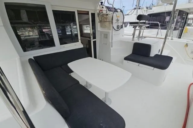 - A comfortable cockpit looking out to sea: a starboard dining table, able to accommodate up to twelve guests, a recreation area on the same side and seating at the rear beam.