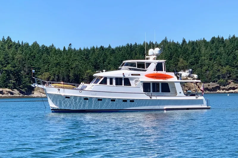 Her raised pilothouse configuration creates a natural flow between the salon, galley, and helm while providing exceptional visibility underway. With three staterooms, three heads, wide walkaround decks, and the security of a Portuguese bridge, Journeys is equally suited for extended cruising, entertaining, or exploring distant destinations in comfort and confidence.