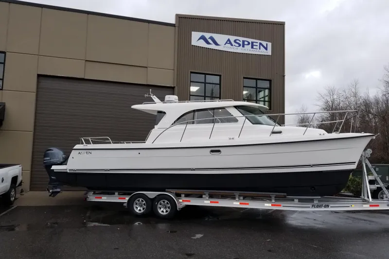 Offered here is an exceptionally well-equipped Aspen C107, a boat that redefines what a 34-foot power cat can do. Designed with Aspen’s signature asymmetrical hulls and power, the C107 delivers remarkable efficiency, a soft ride, and confident handling in conditions that send conventional boats looking for shelter.