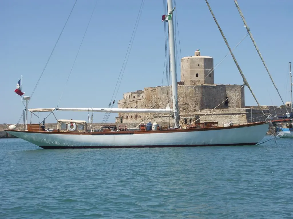 Design n° 505 A of G.L. Watson Office in 1928, JULIETTE was masterly built by Alexander Robertson & Sons of Sandbank in Scotland with yard number 180. 20 metres on deck, with a 15 metre on water line, this extraordinary sailing yacht is one of the last Gaff Cutters built in Scotland, and one of the nicest classic yachts to take part successfully in International Classic Yacht Races. The keel is a single solid piece of teak on which is bolted lead ballast of 16 tons. The teak deck is still original more than 90 years after construction with the exception of a few pieces and is fastened directly to the beams.
