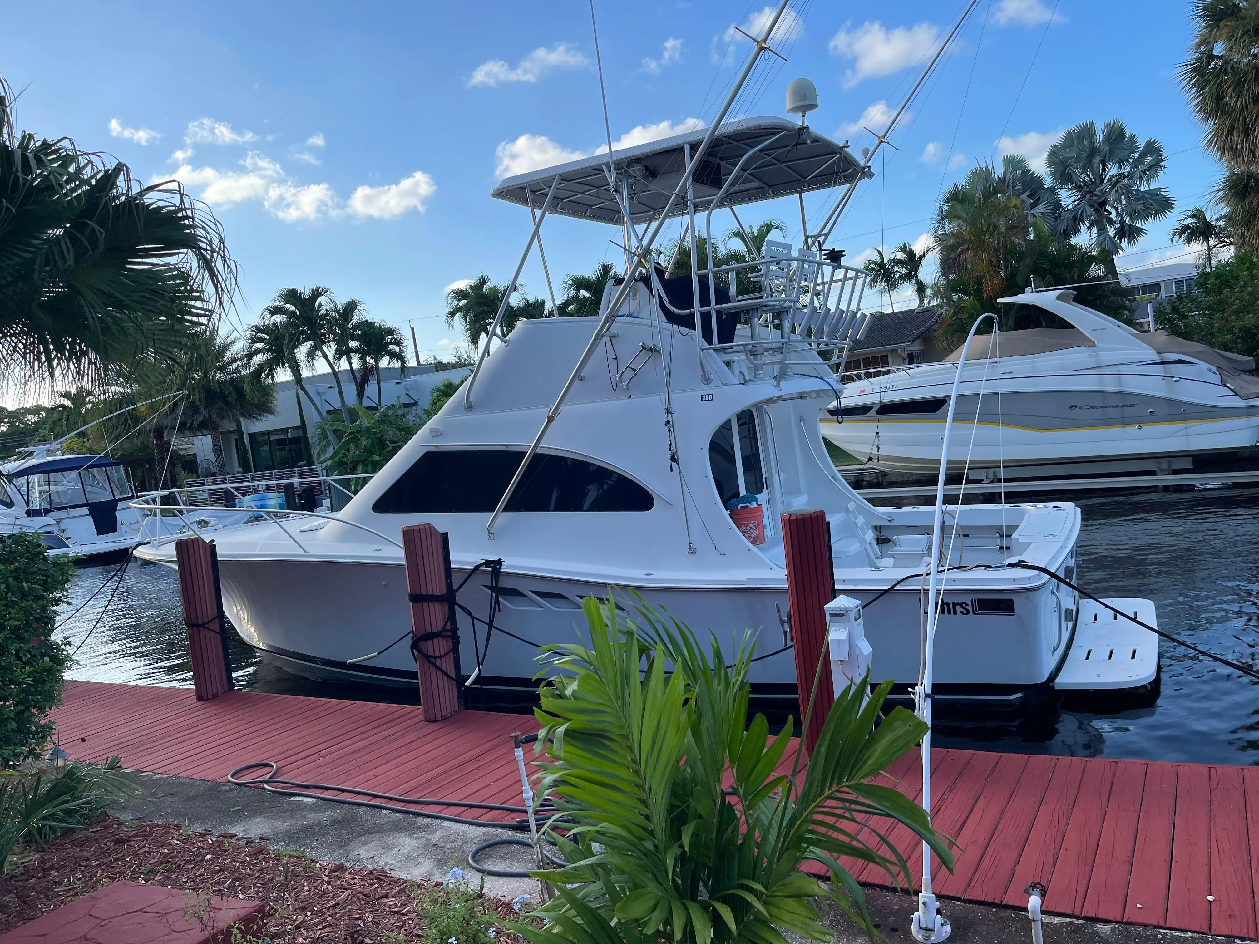 One of the top-selling small convertibles ever produced, the breakthrough feature of the Luhrs 36 was her molded flybridge steps in the starboard corner of the cockpit. Rather than climb a near-vertical ladder, a staircase made bridge access easy and safe—an innovative concept soon picked up by other convertible manufacturers. Built on a solid fiberglass hull with a wide 13'10" beam and flared bow, the 36 boasts a very spacious interior. The two-stateroom, galley-up floorplan is arranged with a queen berth forward and a settee in the guest cabin that converts into over/ under single berths. A separate shower stall is found in the large head, and an L-shaped settee/dinette is to port in the spacious salon. The engine room is accessed through a hatch in the salon sole. Fishing features include a transom door, transom fish box, cockpit rod storage, and a molded bait prep center to port. A factory half tower was standard. When boat was new, the twin Caterpillar 3126 with 420hp diesels cruise at 22 knots (close to 30 knots top).