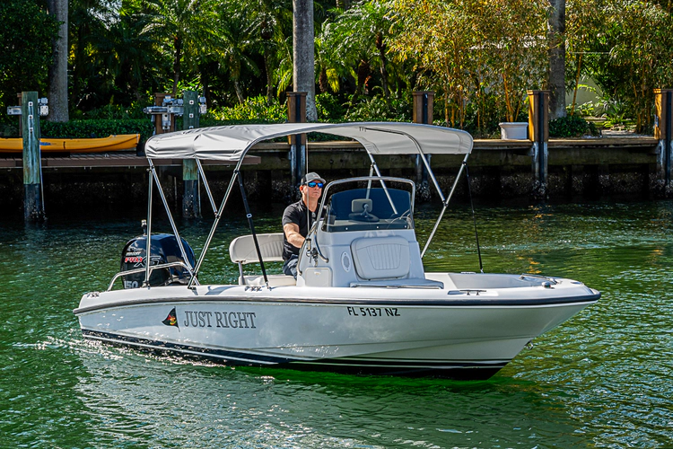 In 2022 "Just Right" was purchased as a tender to a large motoryacht program and was meticulously planned to be made "Like-New" and re-designed to match the Mothership. The hull was completly stripped and re-painted using Awl-Grip paint and a new rubrail was added, dditionally fresh bottom paint was appllied for anti-fouling properties. The interior of the boat was completely stripped and re-painted, all new cushions were made for the seating areas, and a new Mercury 150XL Pro XS was installed with new guages and controls. A modern sleek new dash was fabricated to house the Garmin multifunction display, stereo, and VHF. For added comfort a folding Bimini top was installed. For safety a fire extinguisher was mounted at the console and an easy to access 110V outlet for the built-in onboard charging system. Finally, on the transom you will find the attached deployable swim ladder and access to the battery switch.