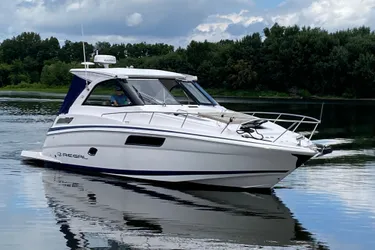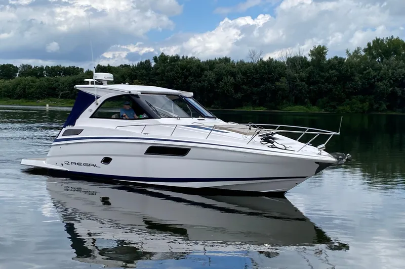 Introducing the Regal 35 Sport Coupe, a stunning express cruiser from 2014 that combines elegance with performance. Measuring an impressive 36.83 feet in overall length, this vessel boasts a sleek fiberglass hull with a deep Vee shape, ensuring smooth navigation and stability on the water. Powered by twin Volvo Penta V8 engines, each delivering 300 horsepower, this boat offers exhilarating speed and responsiveness, perfect for both leisurely cruising and spirited adventures. With only 518 and 517 hours of use, these engines are in excellent condition, ready for your next journey. The Regal 35 Sport Coupe is designed for comfort and style, making it an ideal choice for those who appreciate quality craftsmanship. Its thoughtful features enhance the boating experience, providing a perfect blend of luxury and functionality. Experience the joy of the open water with this remarkable vessel, aptly named "JUST TRADED."