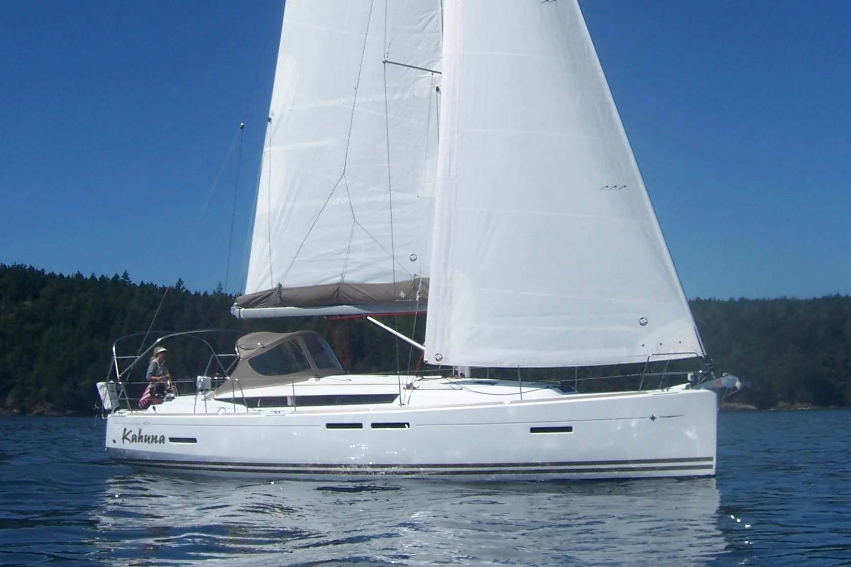 "Kahuna" is an extremely well maintained, well equipped Jeanneau 409.  Ready to cruise or club race now!  With a light and spacious open interior and large owner cabin forward, she is a lot of boat for a 40' vessel. The 2 Cabin 1 Head layout features a large owner’s cabin forward with separate desk, extremely spacious main salon, large aft cabin to starboard, Nice L-galley with Corion counters and lots of cupboards, and spacious head to port with access to the giant ‘garage’ with plenty of storage for gear and sails.