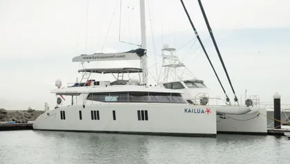 The yacht's refined interior furnishings and spacious design create a memorable experience for all on board. For sail enthusiasts, the Sunreef 74 catamaran's sail set includes a main sail, genoa, staysail, storm jib, and gennaker, covering an expansive area. Powered by twin John Deere 225 HP engines and equipped with dual Cummins Onan Diesel generators of 27 kVA each, the yacht's fuel tanks hold up to 3,000 liters, offering an impressive range. Measuring 23.3 meters (74 feet) in length, the yacht boasts a beam of 10.1 meters (33.1 feet), a draft of 1.95 meters (6.4 feet), and an air draft of 35.13 meters (115.3 feet). The vessel's RIB tender measures 5.5 meters and is powered by 115 HP. It can accommodate up to 15 passengers.