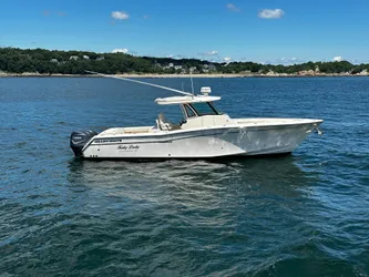 "KATY LADY" is offered by her knowledgeable original owner following several seasons of light use mostly as a platform for diving and coastal family cruising and fishing. Special measures have been taken to ensure proper maintenance of the Yamaha 350's including indoor heated winter storage. The 37-foot center console Canyon 376 is an awesome saltwater sportfishing boat also well suited for casual family boating. Exceptional detail shines in the boat's ergonomics, function, fit & finish, and performance. The console cabin boasts a high level of detailed comfort including head, shower, small galley and double berth. Grady's exclusive SeaV2 ride is incomparable.