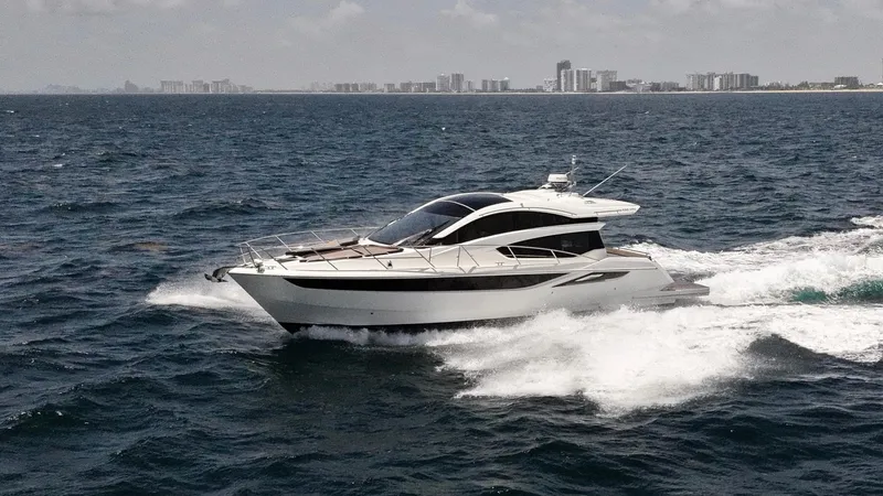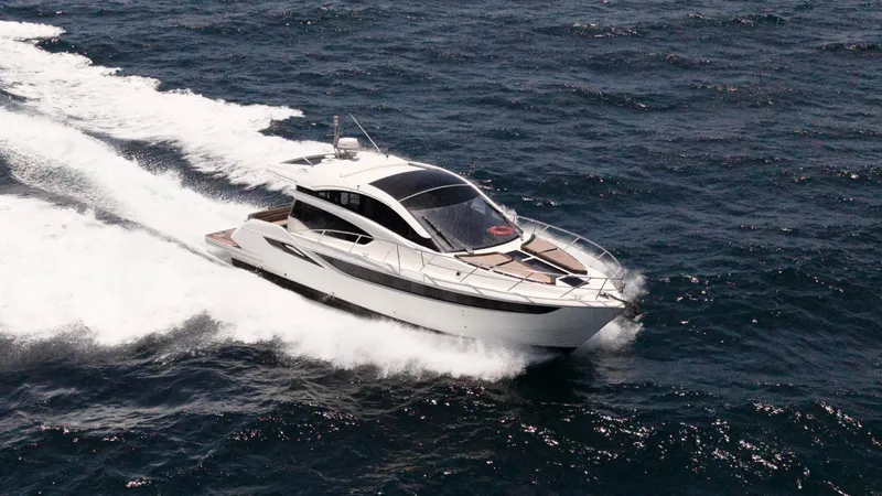 Galeon extended and refreshed its mid-range segment with a hardtop variant of the acclaimed 420 FLY. The main focus of the design was to flawlessly integrate a bright and welcoming interior with the sporty and dynamic character of the 430. The forward-facing glass roof effortlessly slides back yet is quick to close if the weather gets harsh.