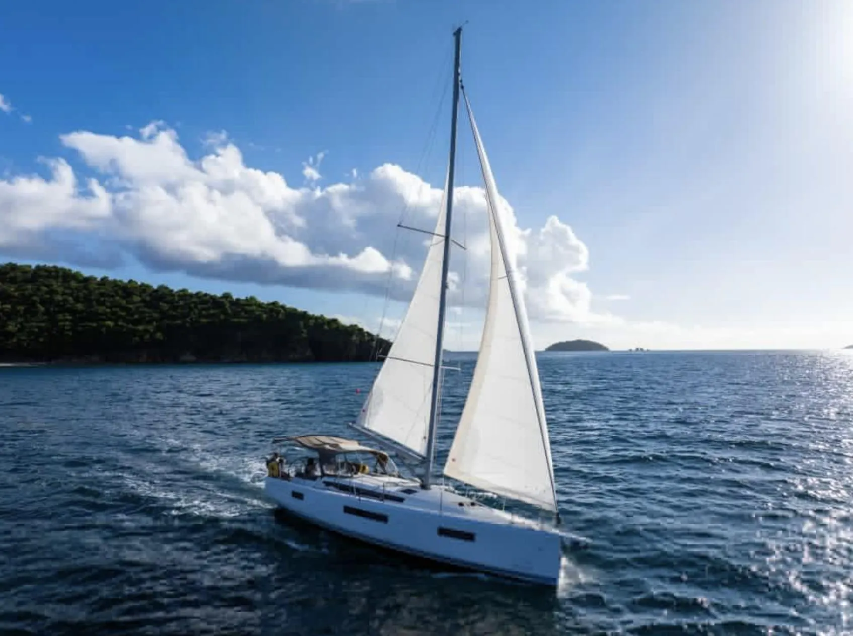Sun Odyssey 440's high performance platform incorporates a full length, hard chined hull to promote fast cruising while minimizing heeling. The generous sail plan is easily handled by the inboard winches and lowered gooseneck height. Sailing this boat is an experience like none other. She is fast, powerful, and nimble on the wheel.