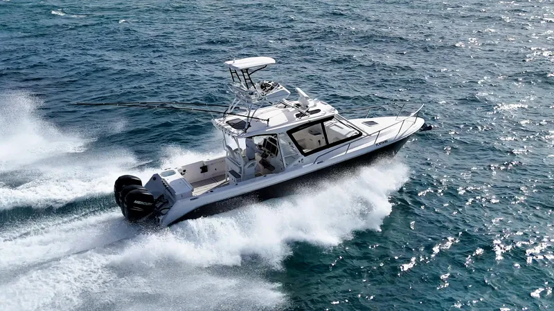 Excellent condition and continually upgraded with Mercury Verado 300hp motors running smooth and quiet. Mercury joystick piloting system all new or updated. Newer Garmin displays up and down, new radar and VHF. Fusion Apollo stereo with JL Audio speakers. Hull sides and motors are painted flat black. . New Isinglass, updated upholstery . Covers for virtually everything keeps the sun at bay. Generator replaced in 2022. SeaDek flooring and so much more. Current owner has kept her maintained but just doesn't have the time to enjoy it.