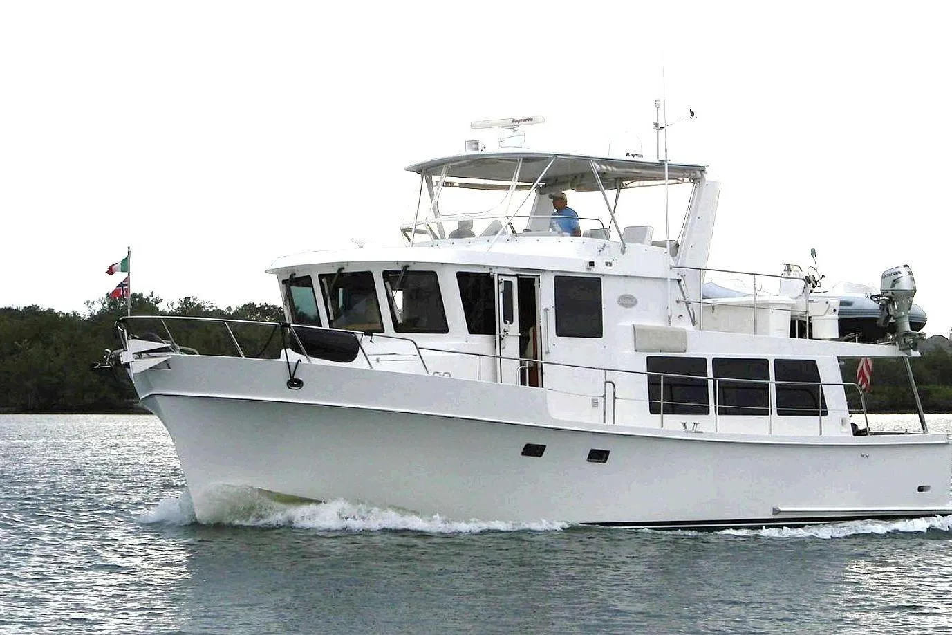 The wide walkaround decks, sturdy handrails, and thick gunwales, allow for safe and comfortable movement throughout the vessel. It’s a practical pilothouse, spacious flybridge, and relaxing aft deck…and under 50ft. An ideal layout for any serious cruisers.