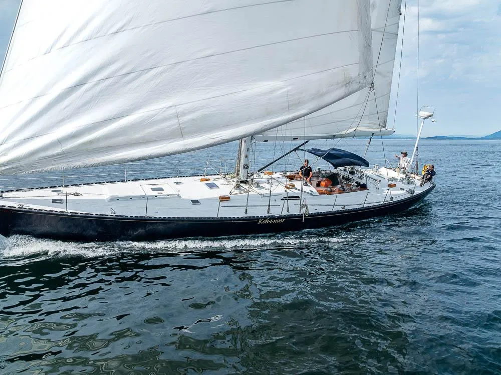 1984 and then sailed north to Bermuda and finally to the great lakes, Kohinoor was raced occasionally in the lakes until 1992 at which time it underwent a 10-year refurbishment where nearly everything was upgraded or replaced. It went back into the lakes fall of 2002 and shipped to Seattle in the fall of 2003. It underwent complete repaint of topsides and bottom at that time and was moored at Roche Harbor in 2004, It remained at Roche until 2006 when it was again put on the hard until fall of 2010.