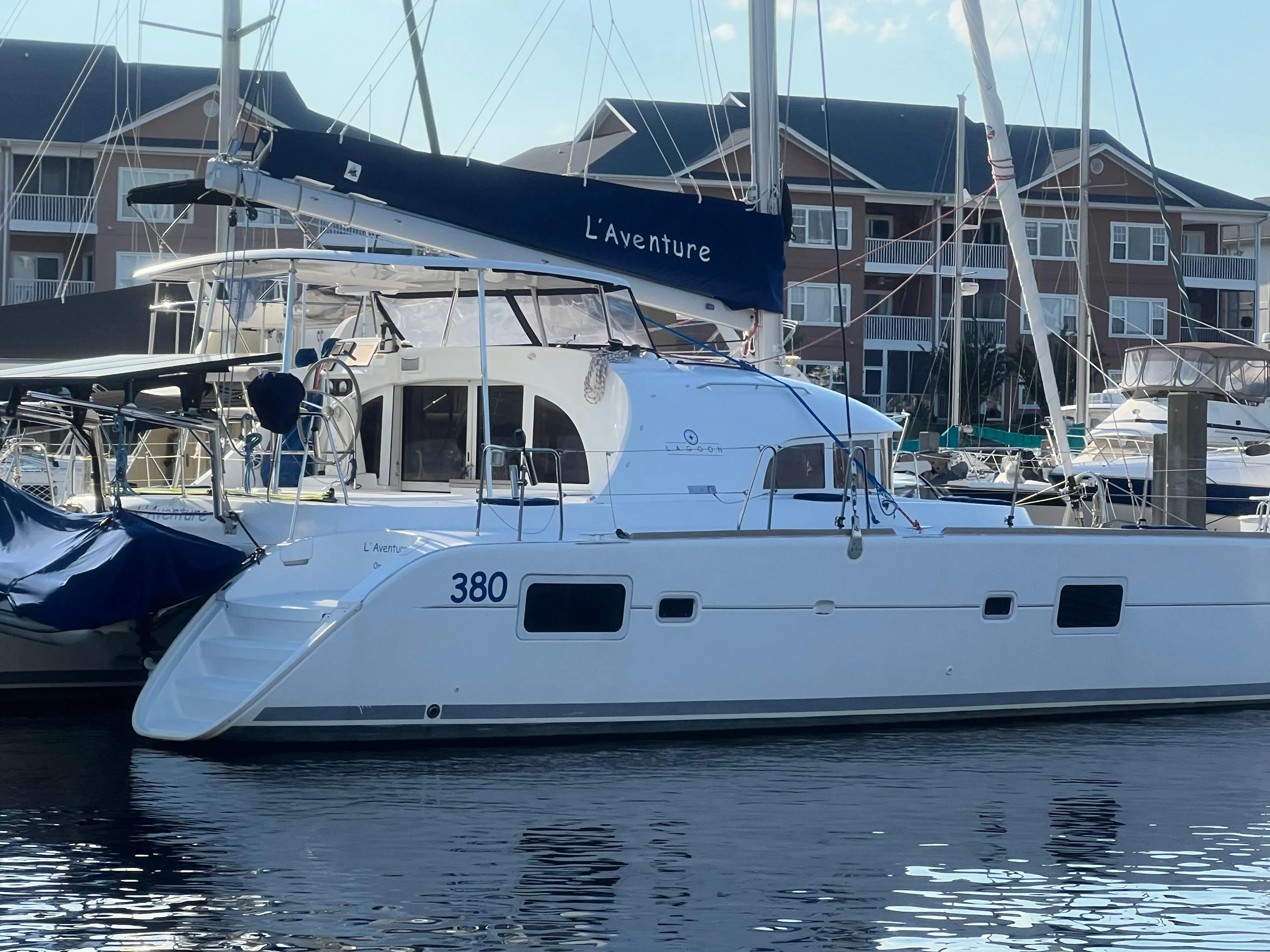 The very popular Lagoon 380, L'Aventure is now available! This 2014 model is just back from the yard and had the bottom barrier coated and fresh bottom paint applied. The sail drives have both been serviced as well. She is lying in Little River, So Carolina and ready for the Summer cruising season. Slip is available for Summer use at the very popular Lightkeepers Marina in Little River, SC. Owner's are super motivated as they are purchasing a larger vessel!
