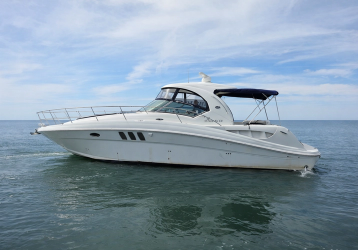 One of the most popular express cruisers of its time, the Sea Ray Sundancer 40 was designed for both luxury and performance. The open cockpit provides ample seating along with a wet bar and large swim platform, perfect for entertaining. The interior has a luxury feel with its rich cherry cabinetry, comfortable salon and well-appointed galley. Key features include Raymarine electronics, bow thruster, autopilot, new canvas and eisenglass, generator, and air conditioning. Maintenance receipts available upon request. Call the listing broker to schedule a showing.