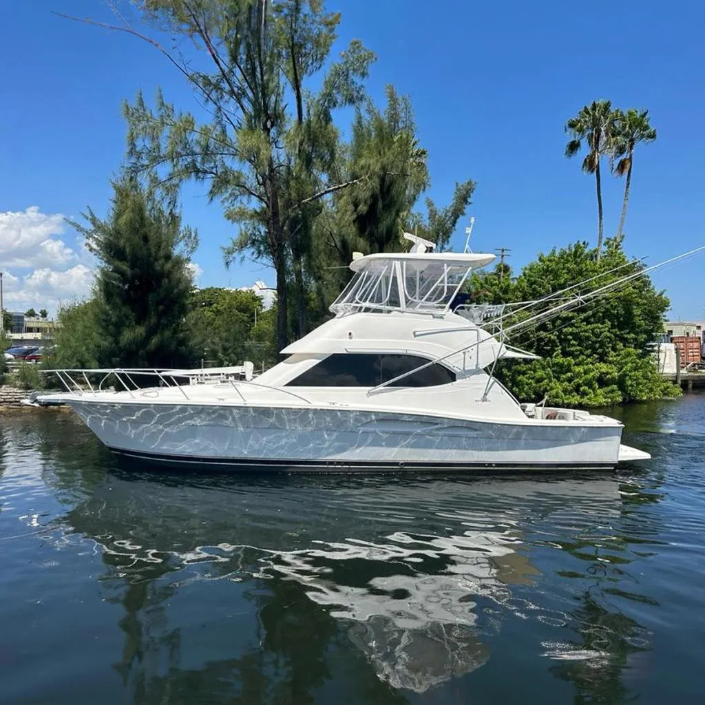 The two-stateroom, one-head layout offers plenty of space for extended trips, with a full galley, a comfortable salon, and a fully enclosed flybridge with updated electronics. The large cockpit is perfect for fishing or relaxing, with plenty of storage and easy access to the water.