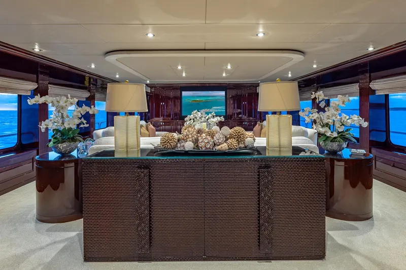 With exterior design by Christensen Shipyards and an elegant interior by Carol Williamson & Associates Ltd., Lady Joy accommodates up to 14-16 guests in luxurious comfort, along with space for up to12 crew members, including the captain. There is an optional seventh cabin with bunk beds and ensuite head should you wish to run with 9 or 10 crew. Her durable GRP hull and superstructure are powered by twin MTU engines, enabling a top speed of 17 knots. Relax and unwind in the inviting ambiance of Lady Joy.