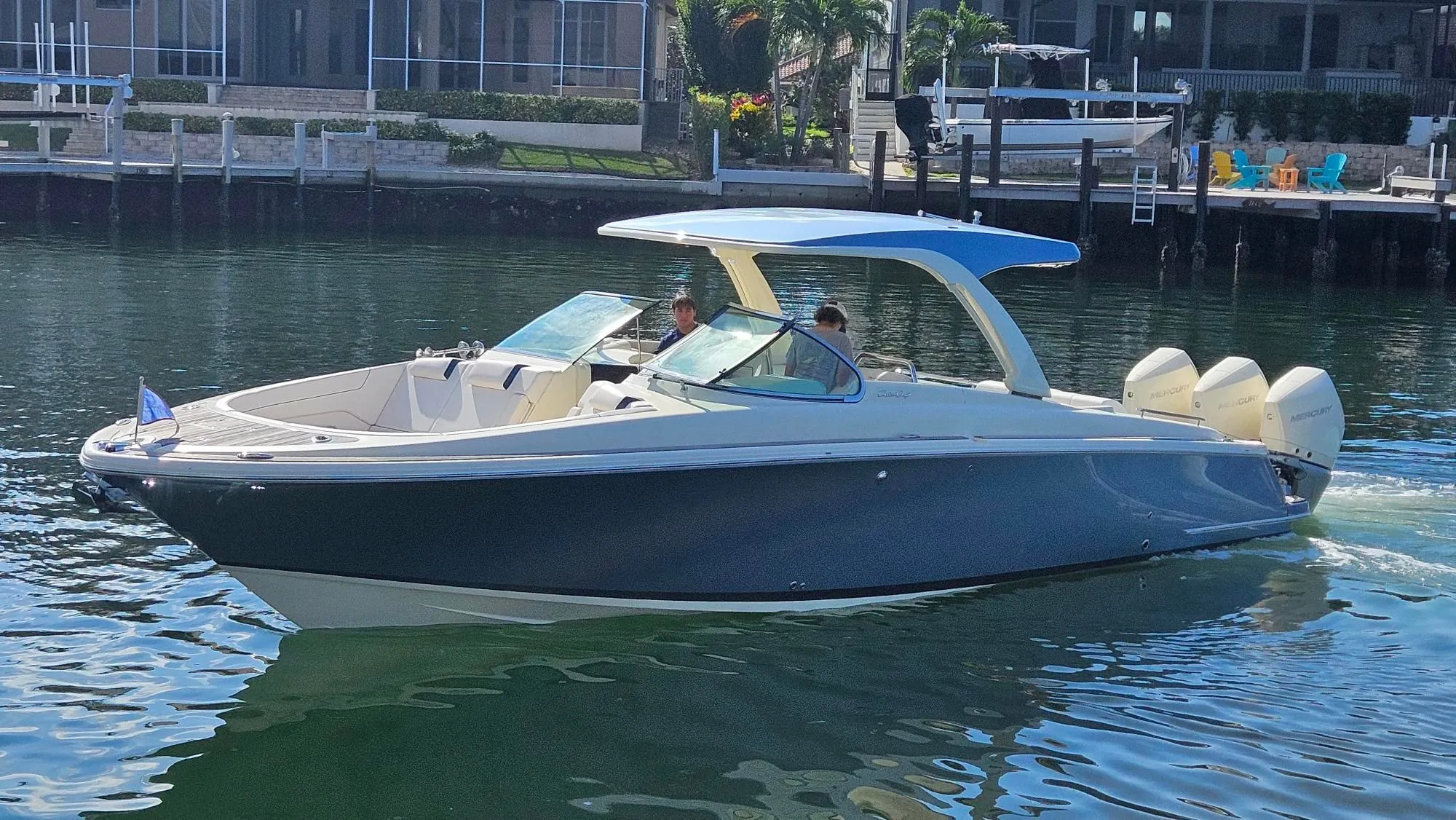 Potent outboard performance. Triple Mercury 300 horsepower outboards give you muscle for quick acceleration, tight maneuvering, and confidence when pushing through chop. Whether you’re blasting across open water or easing into a dock, you’ll feel in control.