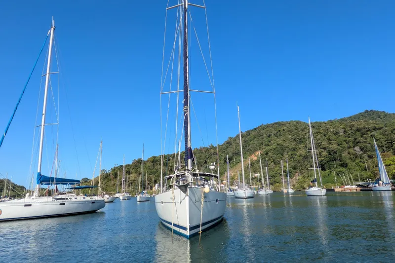 After completing the 2005 ARC and arriving in the Caribbean, she was based in Trinidad, where her first owners sailed her only a few months each year until 2015. From 2015 to 2022, “Laylay” benefited from professional guardianship while stored on the hard. She remained fully covered, protected by a complete deck cover, and kept dry with a portable air‑conditioning system. Her sails were removed, cleaned, and stored in a climate‑controlled loft throughout this period, ensuring minimal wear.
