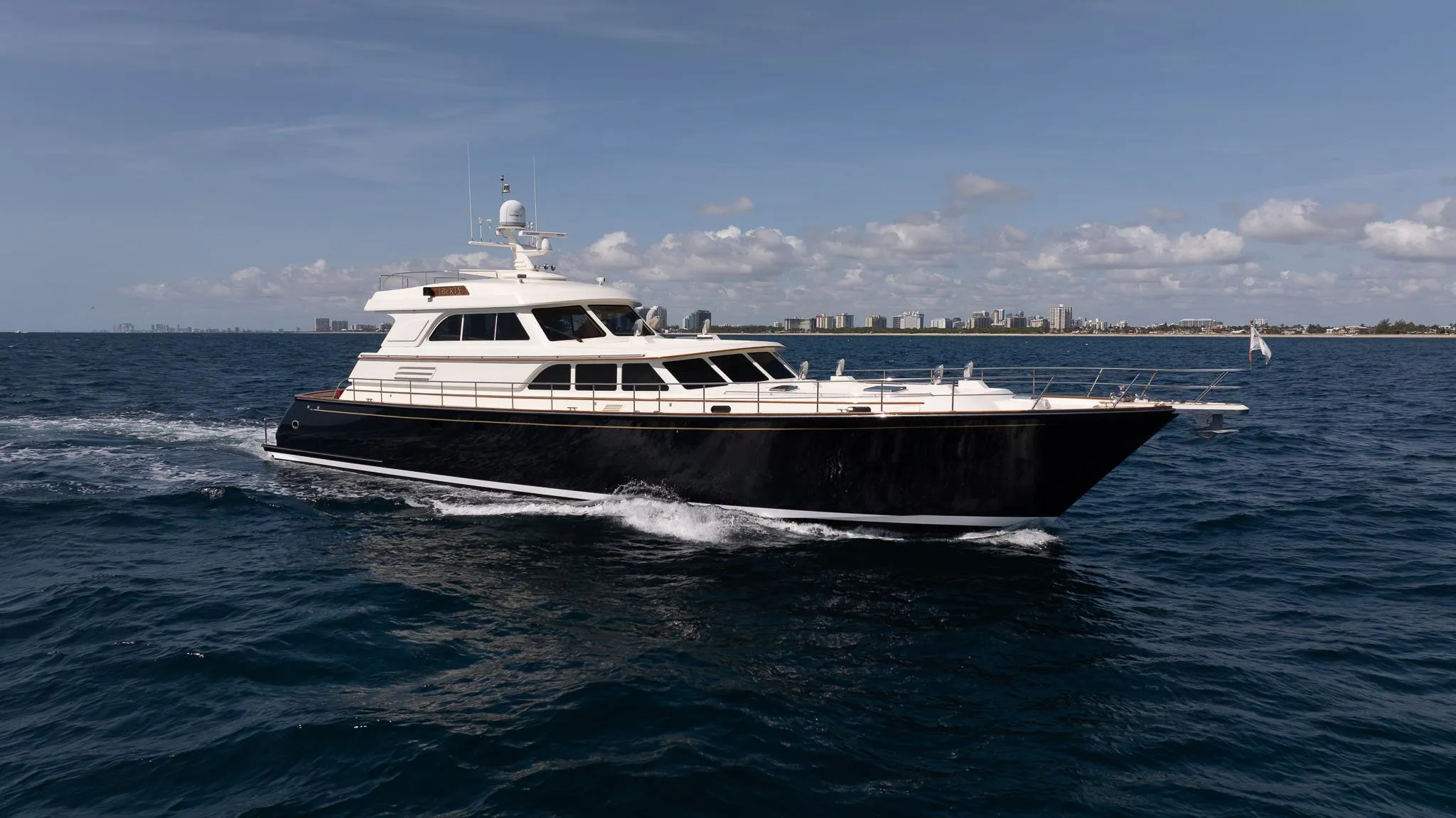 LIBERTY is truly in a class of her own. No expense was spared in her $8 million build; replacement now is much higher. The hand craftsmanship on LIBERTY's interior is far superior to any production yacht. The attention to detail is quite obvious. Her stunning exterior nautical lines give her the ability to fare sea conditions with ease and allow for a soft ride.