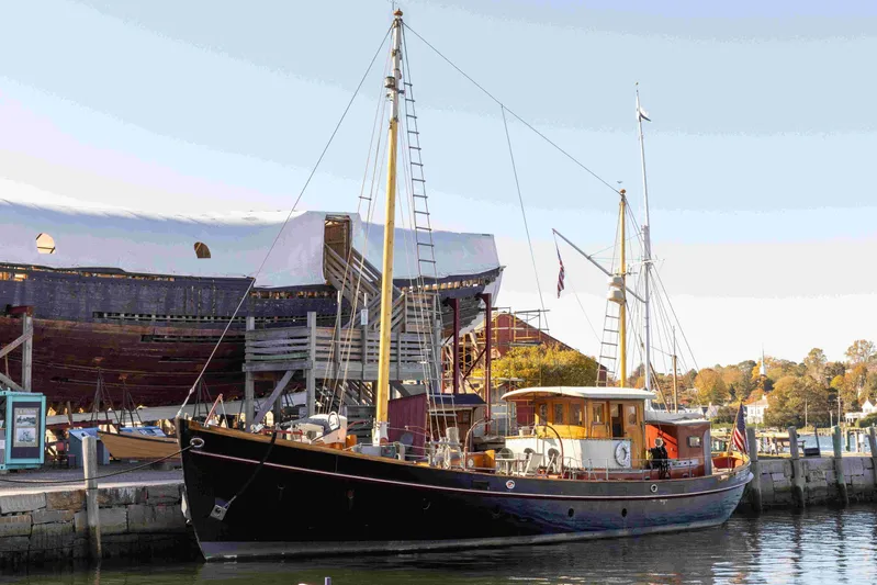Built in 1950 by Abeking & Rasmussen at their Bremershaven yard. Designed with classic New England lines for Drayton Cochran of New York by the Eldridge & McInnis firm of Boston in the style of a Maine sardine carrier, but with appointments of a dedicated ocean capable yacht. Little Vigilant was cruised by Cochran throughout Europe, the Mediterranean, and northern Africa. The Ketch rig of Little Vigilant was designed to allow its masts to step down to deck level, accommodating transit of fixed bridges throughout its then cruising grounds.