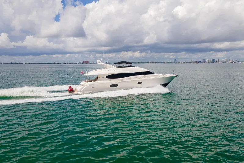 The Lazzara 84 “Living the Dream” is a 25.6-meter (84-foot) motor yacht built in 2008 by the renowned Lazzara Yachts. Designed for both comfort and performance, she features a spacious layout with accommodations for up to 10 guests across 5 cabins, including a master suite, VIP stateroom, double, twin, and single cabins. The yacht also offers six heads, ensuring convenience for all aboard.