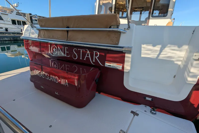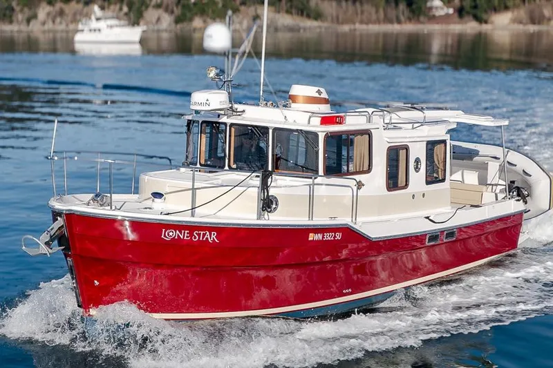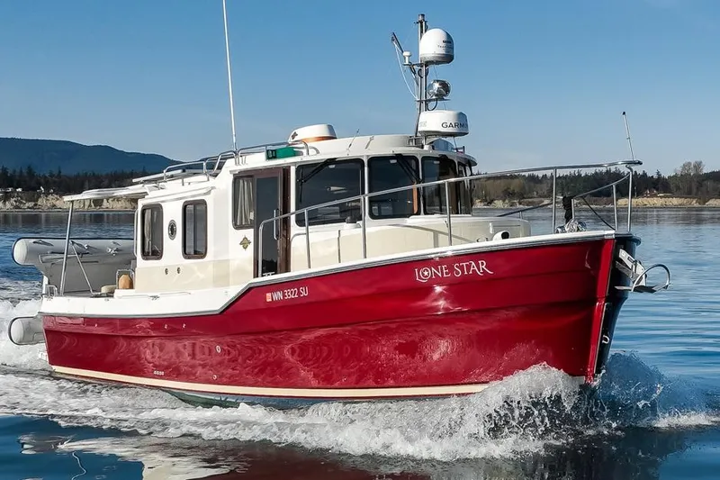 Introducing the stunning original owner 2022 Ranger Tugs R-31 S, an exceptional Express Cruiser that embodies elegance and performance. With an overall length of 35 feet, this vessel is crafted from durable fiberglass, featuring a semi-displacement hull that ensures a smooth ride. Powered by a robust 320 hp Volvo Penta D-4 inboard engine, it offers impressive cruising speeds of 12 knots and a maximum hull speed of 18 knots, making it perfect for both leisurely outings and spirited adventures. The R-31 S boasts a well-appointed accommodation layout, including a cozy cabin and a convenient head. Equipped with an electric windlass, this boat enhances your anchoring experience, allowing for effortless mooring. With only 240 hours of use, "Lone Star" is ready for new journeys, promising comfort and reliability on the water. Experience the perfect blend of style and functionality with this remarkable cruiser.