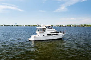 This vessel is well known for its spacious layout, versatile cockpit design, and solid construction. This model is equipped with Crusader 8.1 MPI gasoline engines and a bow thruster.