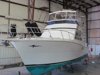 Meet your new fishing fortress: the 1988 Viking 45 Convertible – a timeless offshore legend built for big water and even bigger fish. From the moment you step into her cavernous cockpit, you’ll know she means business. Rod holders? Check. Tackle storage? Of course. Fighting chair? Why not! This is where Lake Erie’s walleye and steelhead learn fear.