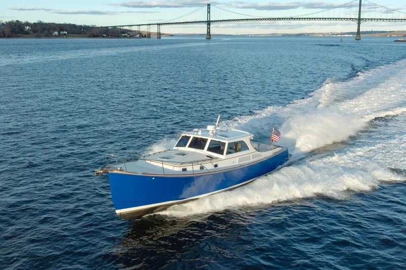 The NEB/Zurn 50’ sits at the intersection of modern race-boat technology and classic New England downeast styling: a fine-entry, moderate deadrise, composite hull optimized around high specific power and waterjet propulsion, delivering big-boat ride quality and capability in a package that still looks timeless in any harbor.