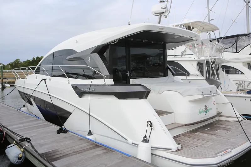 Manufacturer Description - A single glance confirms that the Grand Turismo 45 belongs to the new generation of Beneteau Express Cruisers. With its sleek lines and sporty hull featuring Beneteau's patented Air Step System, this 14.78-meter yacht boasts elegant details such as the faceted cruciform C-pillars and engine air intake cover panels finished in metallic grey.