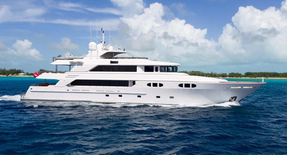 The superbly detailed mahogany joinery work and molding throughout the vessel is complemented by Pomelle Sapele insets and accents, with custom carpets and slab marble flooring.