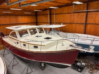 LUCY is an impressive Ellis 36 hardtop express built by Ellis Boat Company of Southwest Harbor Maine. She is optioned out with many features that make her stand out from the rest. The main power plant is a Yanmar 500hp commercially rated engine which offers a cruise range of 12 to 18 knots of boat speed. She has two main fuel tanks and then visited the Ellis Yard later in life for two additional smaller tanks with fuel transfer pump to give her owner an extended range for longer passages. To the port side of the main engine there is a 12kw Master Volt Whisper Generator supplying the boat with 110 power and hydraulic power for the variable speed bow and stern thrusters. Her stern thruster has the ability to rotate 90 degrees and can provide forward propulsion to the boat for back up if needed. Below deck her sleeping quarters, galley and head are quite spacious and comfortable. Dock side power or generator power, she has air conditioning for the summer and reverse cycle heat for the off season. The impeccable interior, updated electronics and comfortable helm and companion seating will bring much joy to her next owner. LUCY is now nearing completion of all mechanical services, bottom sanding and paint, zincs, running gear antifouling, hull polish and new exterior deck cushions. LUCY will be ready for your inspection.
