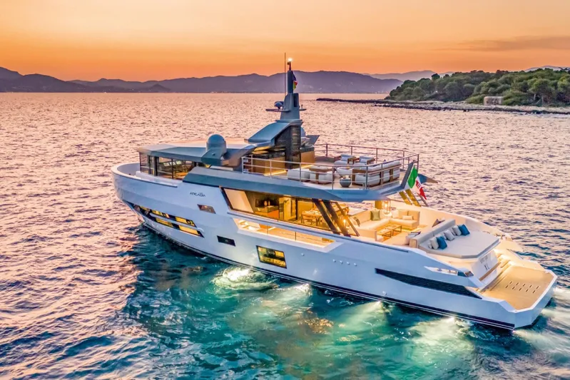 Arcadia Sherpa 80 XL “Mabelle” is a masterpiece of functionality, contemporary design, and sustainability, created by one of the most innovative shipyards in Italian yachting. With a beam of nearly 7 meters and over 200 m² of combined interior and exterior spaces, it offers exceptional livability, enhanced by Arcadia’s stylistic and architectural philosophy and by the fully customized configuration chosen by the owner.