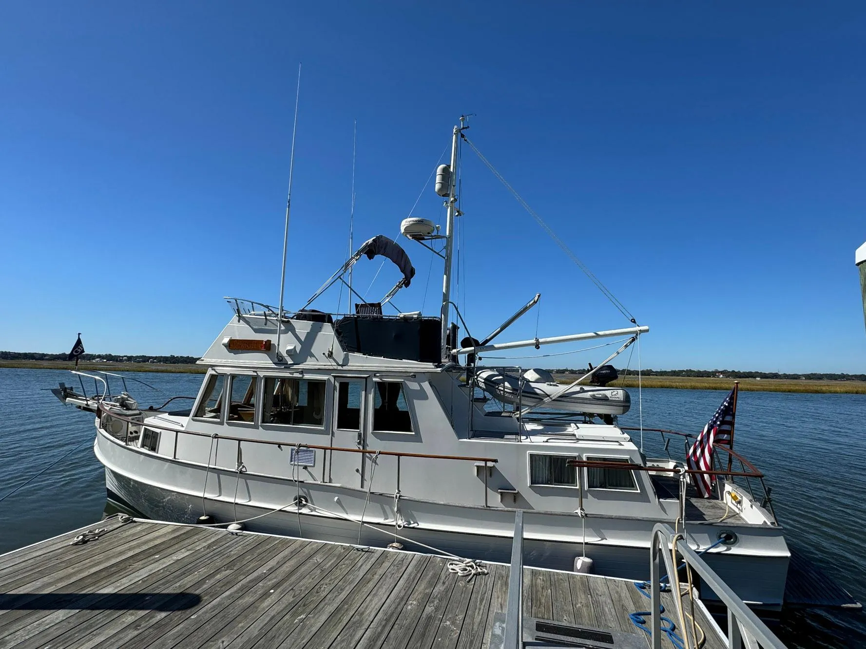 It is said that every boat is a compromise somehow, trading space here for space there.  When a manufacturer produces well over a thousand builds of a model, it is truly a classic, with the right decisions for space made at the factory.  This is a great boat!  Maggie C is powered by a naturally aspirated Caterpillar 3208N diesel that offers incredible fuel efficiency and reliability.  Lots of updates, including new tanks, have been done in her lifetime.  Enjoy a well-built classic, ready for the Loop or coastal cruising, with great re-sale demand down the road…come see Maggie C in beautiful Beaufort, SC.