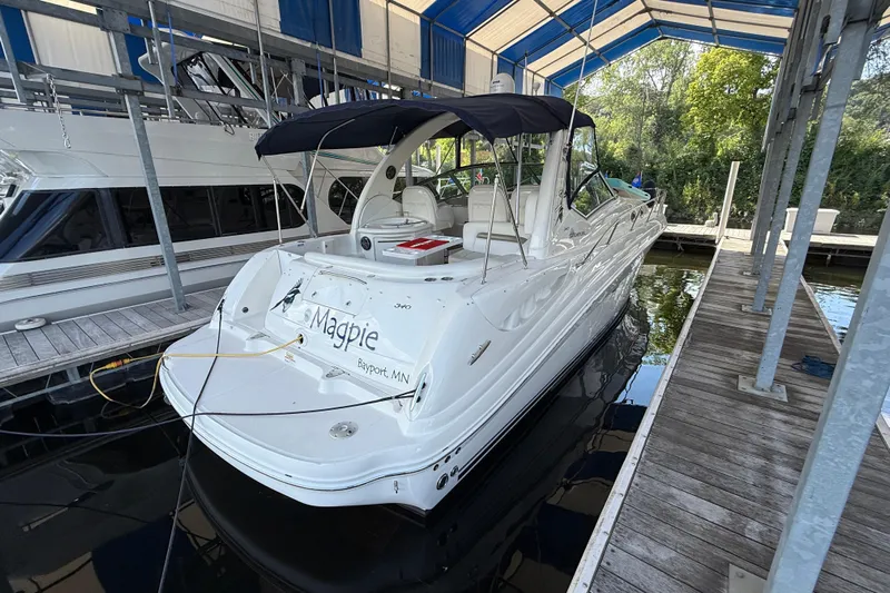 Introducing the stunning 2006 Sea Ray 340 Sundancer, a remarkable cruiser that combines elegance with performance. With an overall length of 34 feet, this vessel boasts a sleek fiberglass hull designed in a Deep Vee shape, ensuring smooth navigation and stability on the water. Powered by twin MerCruiser 8.1 MPI V Drive engines, each delivering an impressive 370 horsepower, the Magpie offers exhilarating speed and agility, perfect for both leisurely outings and adventurous excursions. With only 964 hours of use, these engines are ready to provide reliable performance for years to come. The interior features a well-appointed head, enhancing comfort during your journeys. The thoughtful design includes essential equipment for an enjoyable experience on the water. The Sea Ray 340 Sundancer is not just a boat; it's a lifestyle choice for those who appreciate quality and sophistication in their maritime adventures.