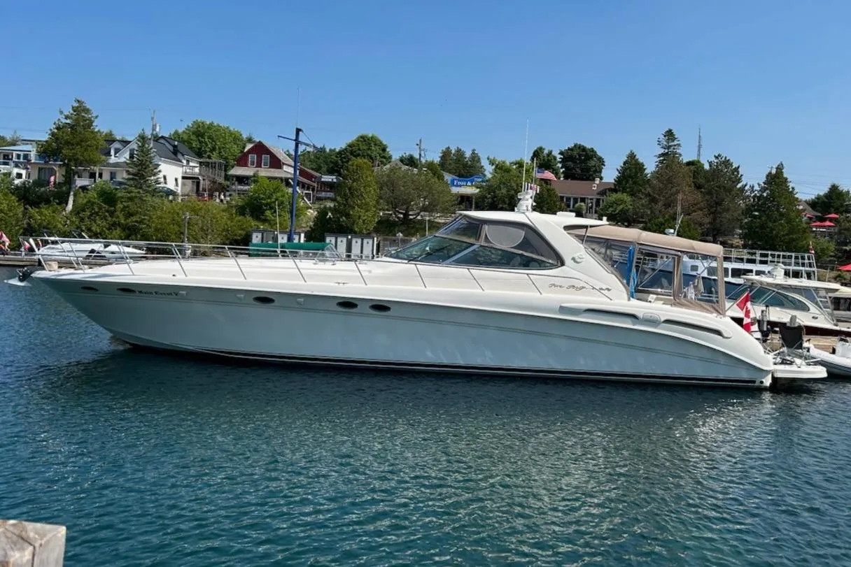 Main Event V has been a fresh water boat since 2003. This ship has been maintained and upgraded to MINT condition every year. The boat has travelled in the great lakes every summer since. Main event V has always been stored inside heated during the off season. In the fall of 2019 virtually everything was rebuilt to new. Engines were completely gone through, all new complete Garmin 8617 Electronics package, including auto search light, radio. etc. New fridge, new microwave, new ice maker, new lighting, new Tv's, all new Fusion sound system.
