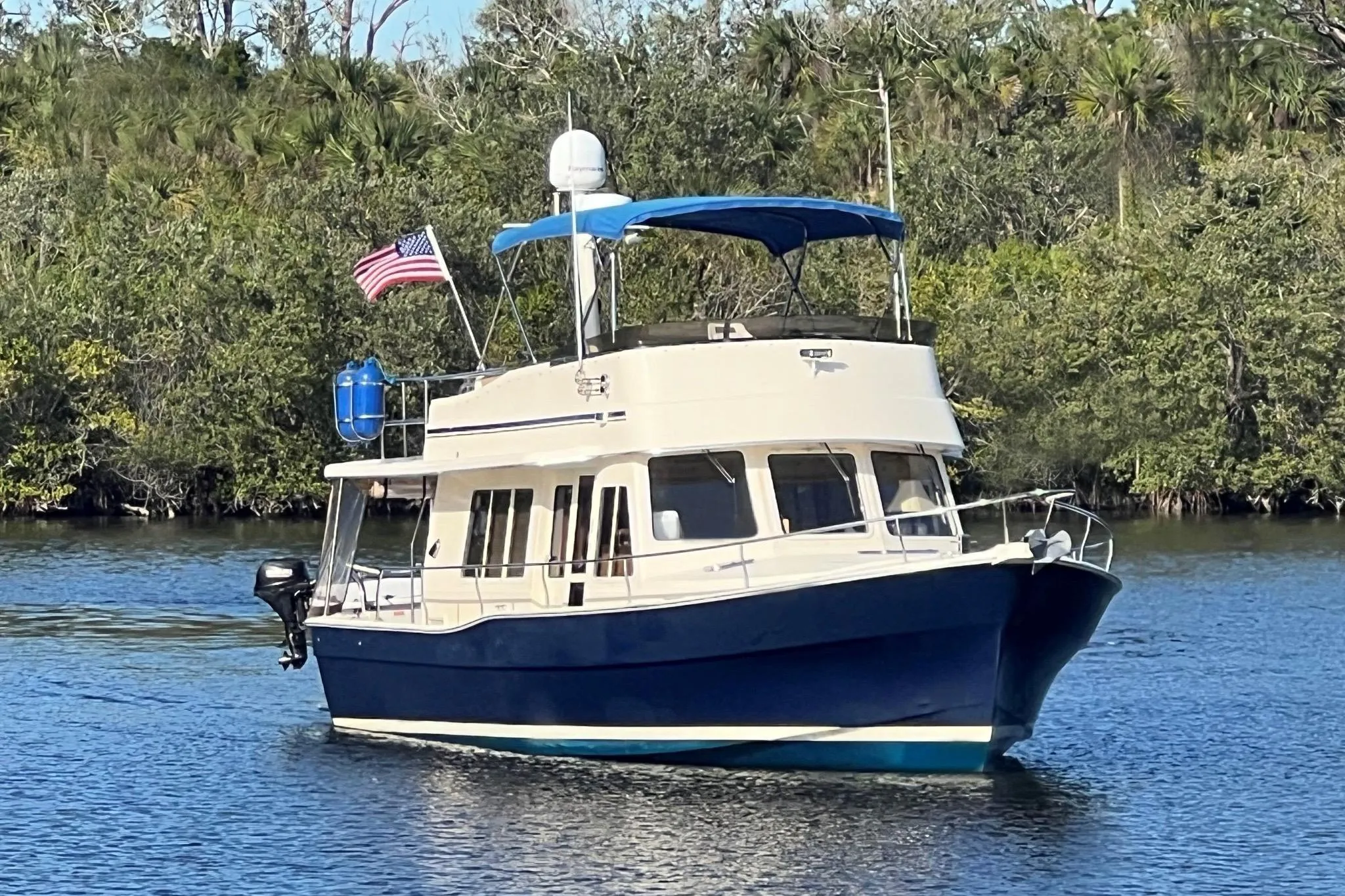 Broker Notes:  Those in the market for a trawler and or interested in capturing a vessel to travel "The Great Loop" - look no further!  In no specific order .. Running Gear Serviced w/NEW 2023 (Props, Rudders, Cutlass Bearings), NEW 2023 Engine / Generator Exhaust Hoses, Full Anchor Chain 150' NEW 2024 w/Spare Delta-35 Plow-Anchor, Washer / Dryer Combination Unit NEW 2023, Full-Size Refrigerator (Domestic 10cuft  12V Inverter), LCD-Television Forward Stateroom, Side Guest Cabin w/Twin-Berth (Converts to Full-Size Berth w/Filler-Cushion), Custom Swim Platform (see photos) w/Power Electric Tender-Lift, 50-AMP Power-Connection (Bow & Stern Connections) .. Vessel comes complete with a tremendous amount of ancillary gear - seller will be available for new owner orientation dockside.  Highly recommended by listing agent!
