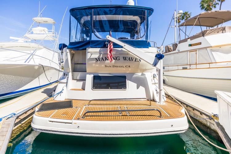 A remarkably roomy motor yacht in excellent condition. Three stateroom, air conditioning, washer/dryer, and a well laid-out cockpit make for a very comfortable experience. Low hours on twin Volvo turbo diesel and an Onan 7.5KW generator are just some of the aspects worthy of attention.